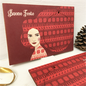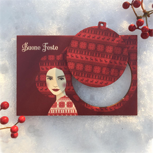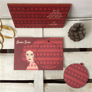 Cartoligna "Natalia": cartolina in legno con decoro natalizio