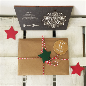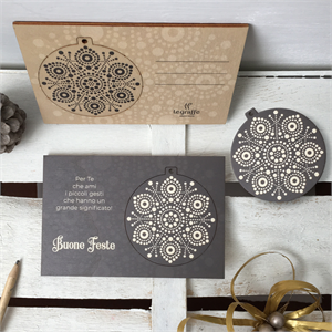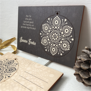 Cartoligna "Fiocco": cartolina in legno con decoro natalizio